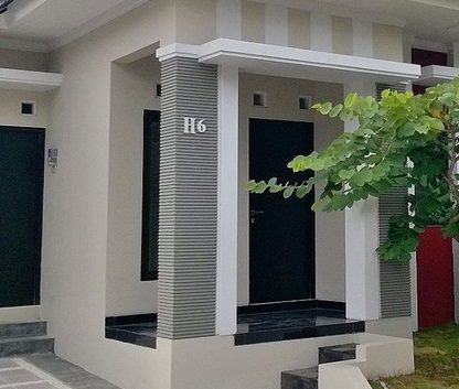 Model tiang teras bulat depan rumah minimalis dengan model teras rumah terbaru dan warna cat rumah yang bagus.
